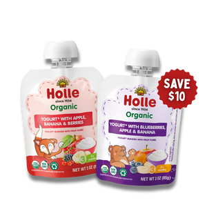 This variety pack includes both berry varieties of the grass-fed yogurt pouches. All Holle yogurt pouches are made with organic grass-fed milk without added sugar, preservatives, or artificial ingredients.