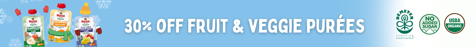 Holle Organic Fruit & Veggie Pouches offer toddlers over six months a delicious organic snack made with Demeter-certified Biodynamic ingredients from regenerative farms, prioritizing soil health and supporting a healthy climate. Holle Organic Pouches come in six unique flavors and are an ideal snack for picky eaters and on-the-go toddlers.