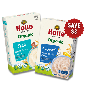 Holle Organic Whole Grain Cereals are a perfect breakfast for your growing child. We offer two wholegrain cereals made from high-quality European ingredients from regenerative farms. Holle cereals are also now Clean Label Certified. Holle baby food recipes are made without added sugar, preservatives, or artificial ingredients.